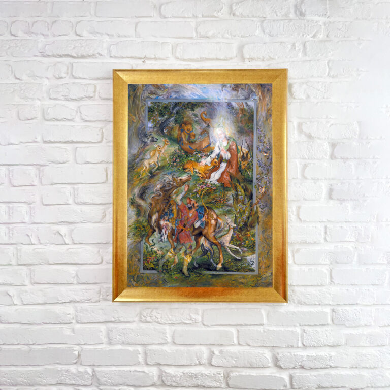 تابلو ضامن آهو -اثر استاد فرشچیان -در دو سایز کوچک و بزرگ (مناسب هدیه)