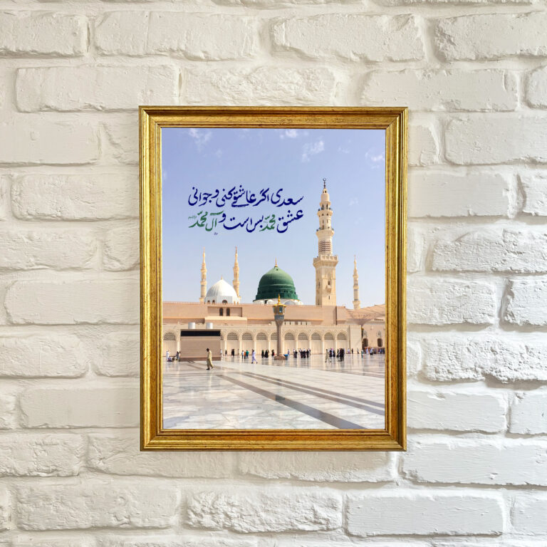 تابلو قاب عکس مدینه النبی (ص) منقش به شعر زیبای سعدی اگر عاشقی کنی و جوانی